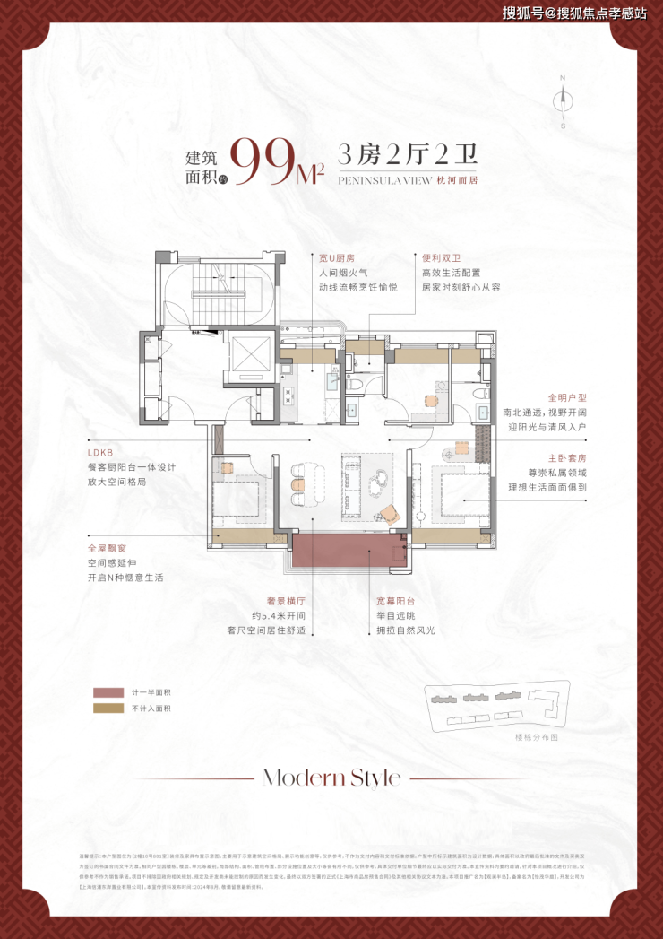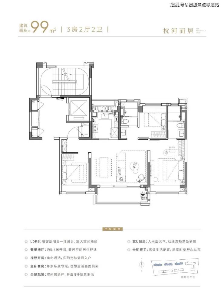 这种级别的建面约99㎡3房,空间尺度感足以媲美建面约110㎡以上户型,设计水准远超同类竞品!