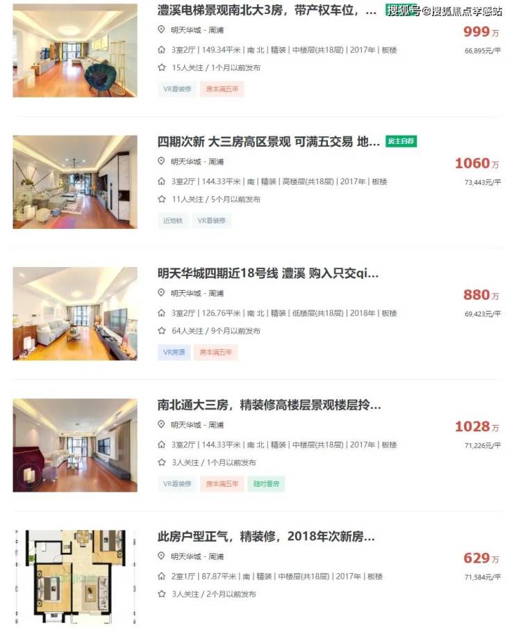 再来看浦发东悦城,去年成交两套房源,均价分别在6.1万和6.4万/㎡左右,整个小区3月挂牌均价在5.8万/㎡左右,这个价格,比起项目当初的新房均价,贵了不少。