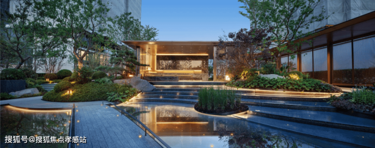 大华·星曜售楼处电话:400-8080-420☎☎√√不仅打造了具有曲线美感的树池,还在水景底部铺了数百片蓝钻瓷片,全角度弧形定制,水刀切割,用金属线条勾勒出水波的形状。