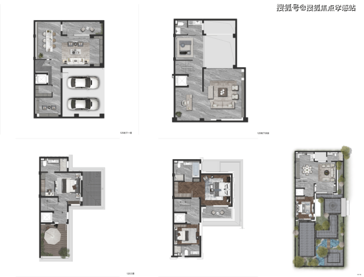 约125㎡的明星户型做到了5套房设计,地下一层、地上三层的空间形态,将空间尺度无限放大。