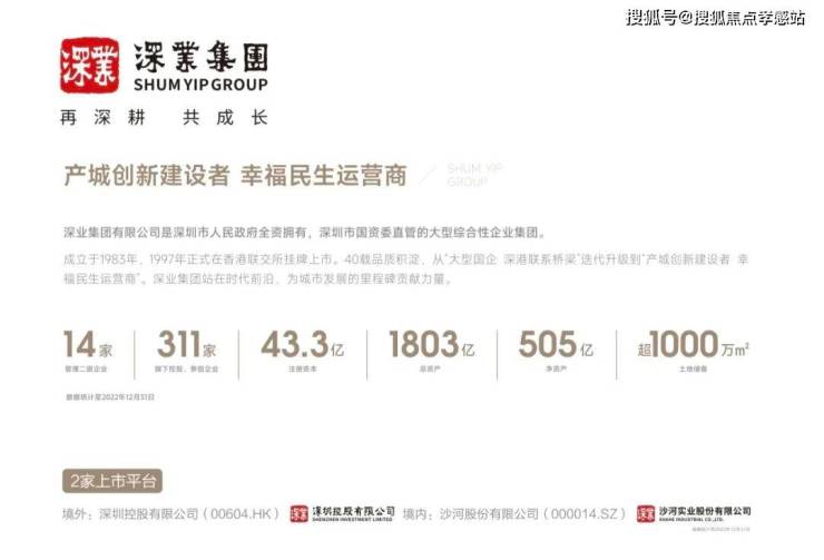 深业集团是深圳市人民政府全资拥有,深圳市国资委直管的大型综合性企业集团,成立于1983年,1997年正式在香港联交所挂牌上市。