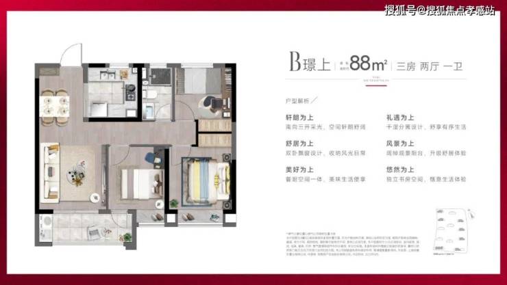 产品方面,项目 主推建面约88-98㎡精装3房,功能性和品质感兼具。