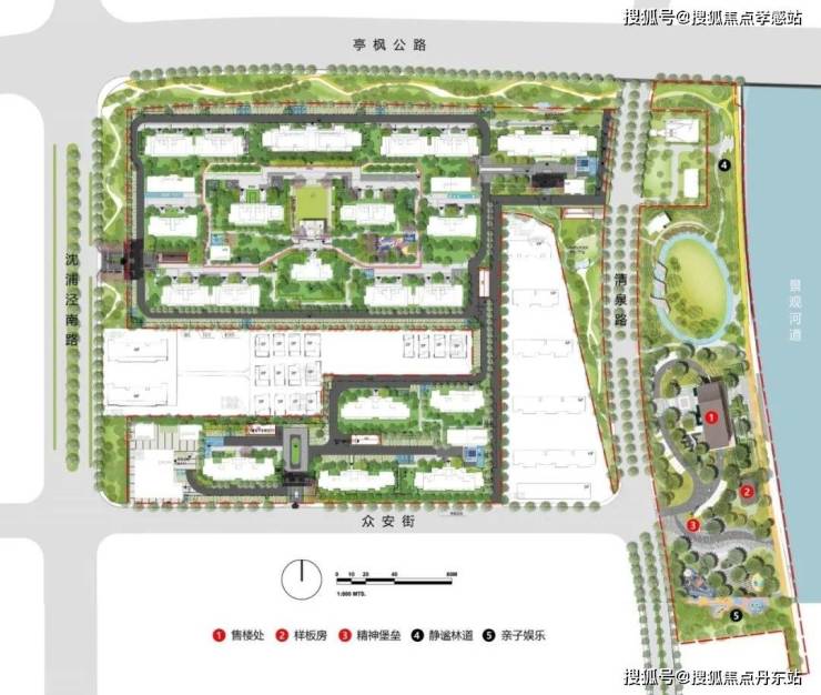 项目东侧紧邻黄浦江的上游河道——掘石港,将打造全长约2公里的西岸绿化景观步道,约1.5公里长的跑道、沿河景观大道,人文走廊、儿童老人休闲区等小品也将穿插其中。