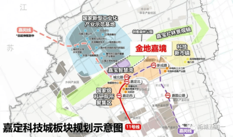 据规划,金地嘉境落址的嘉定新城徐行板块,被定位为科技城自主创新产业示范区,总投资约450亿,未来将建成约1.51平方公里的“科技小镇”。目前中科院应物所、中电科32所、华东计算机研究所等八所国家级科研院集结,同时还正在建造科嘉、盛创等示范园区,为高科技企业提供肥沃土壤。依托强有力的产业发展,以目前的发展势态,科创徐行将成为嘉定新城发展的一匹“大黑马”。