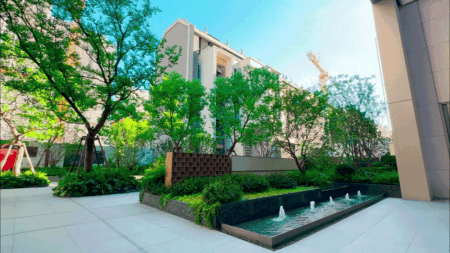 金地嘉境以“住假式花园住区”为设计理念,构建2轴5巷的空间排布,打造极具仪式感的度假般生活体验。目前,项目实景示范区已开放,从门庭归家到社区园林,再到精装入户,全维度公区品质可鉴。