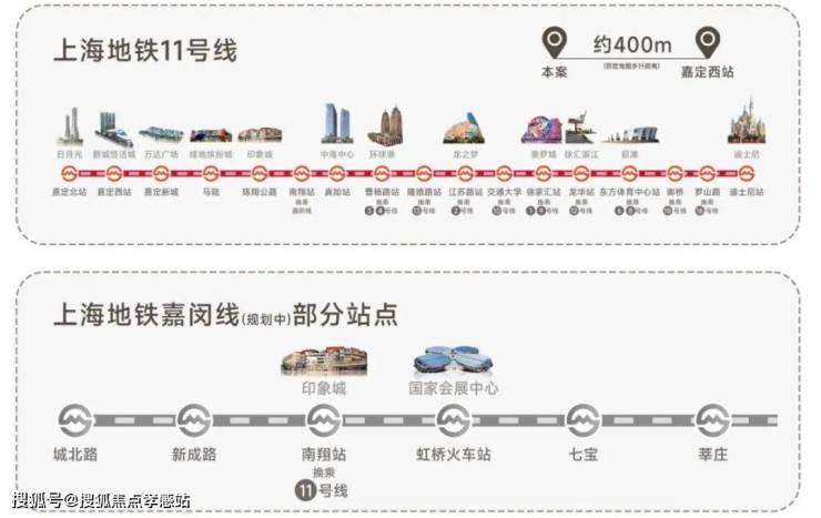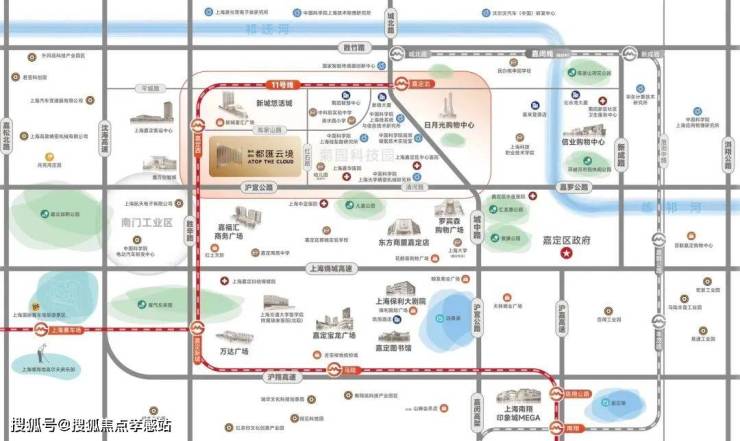 交通配套方面:项目距离轨道交通11号线嘉定西站直线400米左右,附近还有嘉定客运中心,交通便捷。另外,项目临近沪宜公路、距离沈海高速约1.5公里,上海绕城高速约3.5公里,自驾出行也十分便捷。