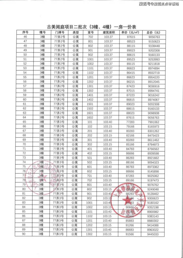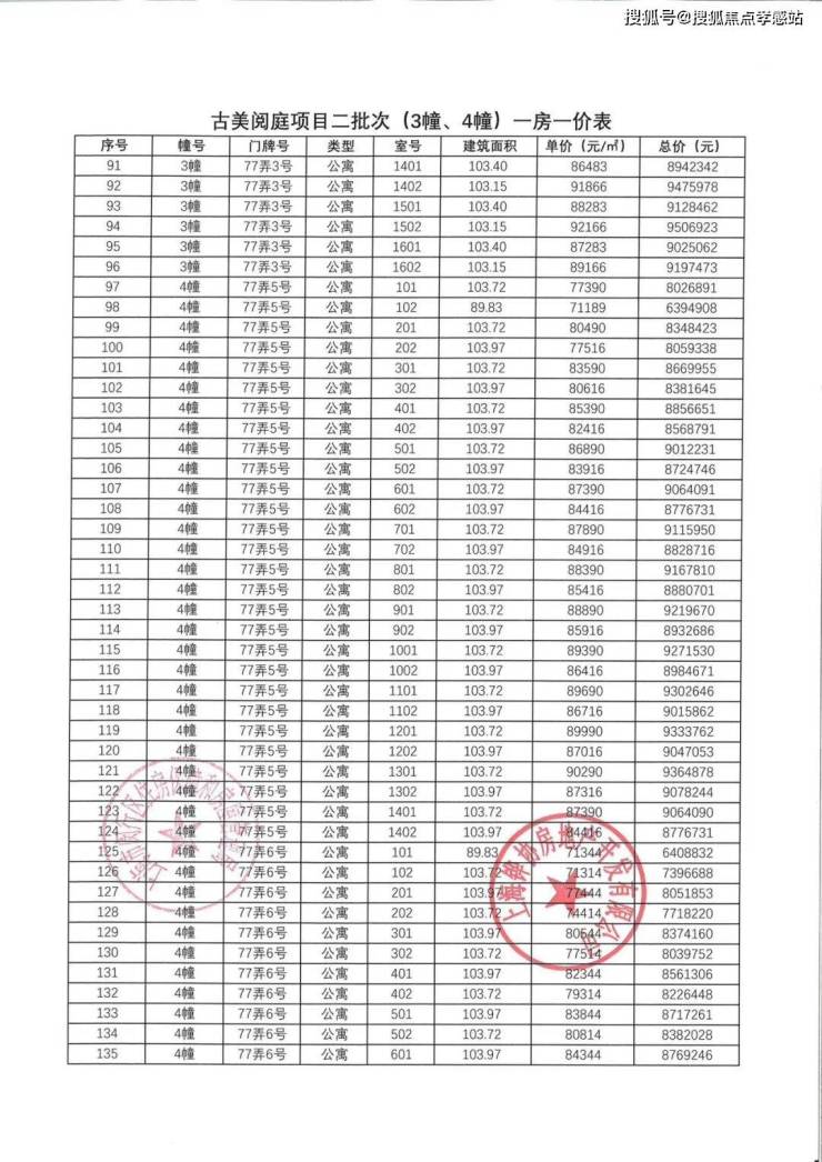 一房一价表