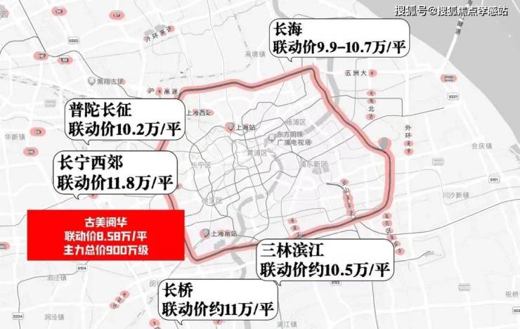 同为中外环板块,杨浦长海联动价9.9-10.7万/㎡;普陀长征联动价10.2万/㎡;长宁西郊联动价更达11.8万/㎡,起步预计近1200万级;浦东三林滨江联动价10.5万/㎡;徐汇长桥新宅地或近11万/㎡。
