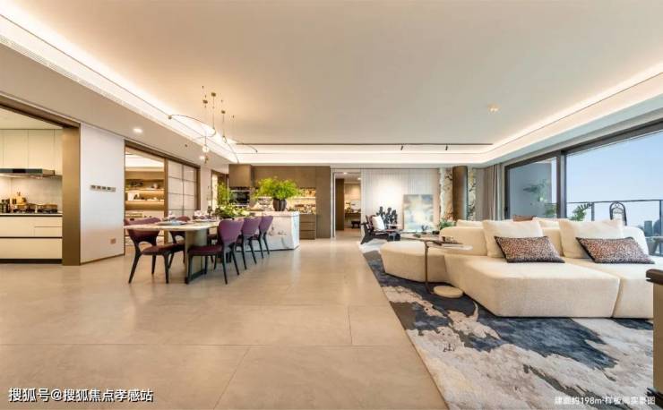 联通阳台、客厅、餐厅、厨房四大空间,打造约7米×约9.5米将近约70㎡的宽厅,无论是瑜伽、品茗、亦或是亲朋相聚……美好生活的场景,于此无尽上演。