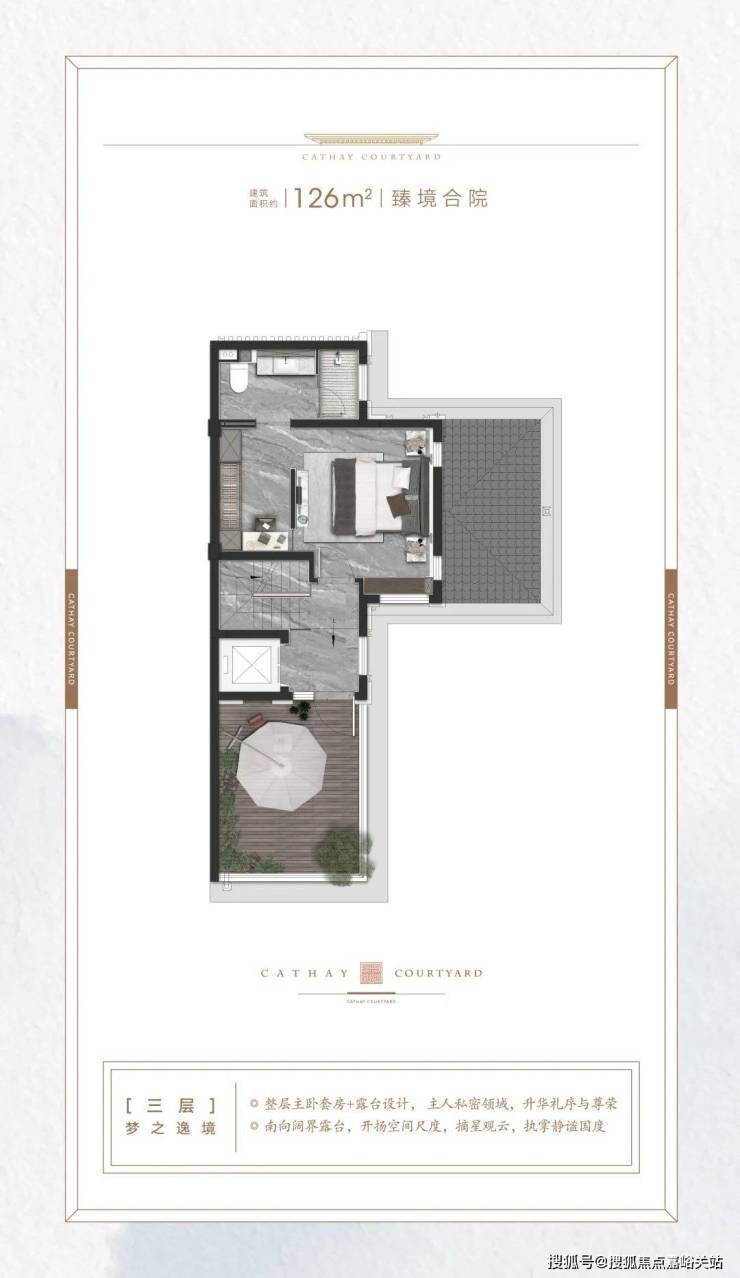 建面约126㎡的合院户型,同样适合三代同堂,或者三口之家以及高净值年轻夫妻等家庭。