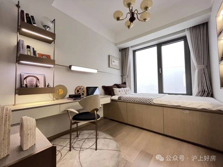 建筑面积约105㎡户型样板间,得房率达到约78%,相对传统“2+1房”设计,可以做到正三房,即每个房间可以摆下大床与衣柜,为每位家庭成员提供完整居住功能。