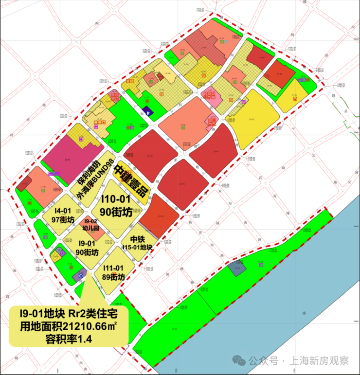 该地块是杨浦滨江低密九宫格第三幅出让的住宅用地。首幅地块为保利·海玥外滩序BUND98;第二幅地块为2025年初,中铁置业遴选摘得的89街坊项目。