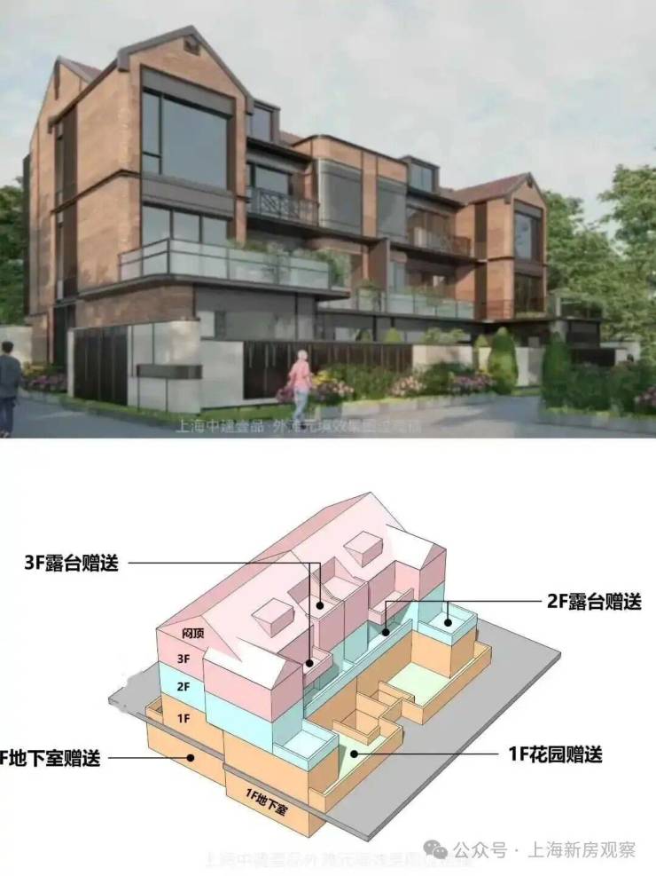 赠送率极高:首层私家花园、地下室、采光花园全赠送;二层大面积阳台露台赠送;三层大尺寸露台赠送,并带有闷顶。