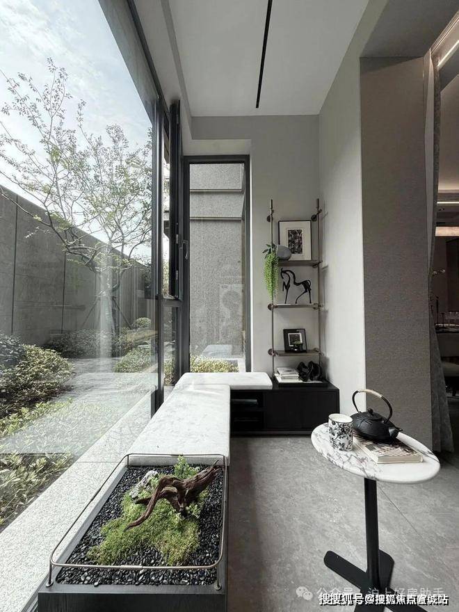第三景-绿波廊下:这里是一个半开放式的吧台空间,开窗与中庭大树遥相对应,树影青葱,清风摇曳,享受悠闲风雅。