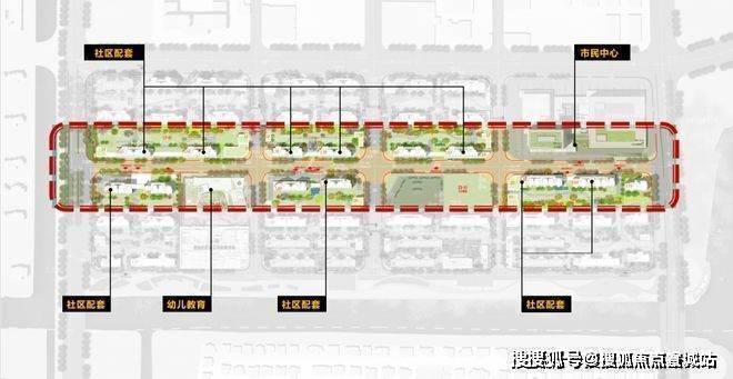 一街为活力商业街,通过纵向布局,在街道两侧配上丰富立体的商业,包括沿街商业、邻里中心、乐活商业街等,满足居民日常的需求。