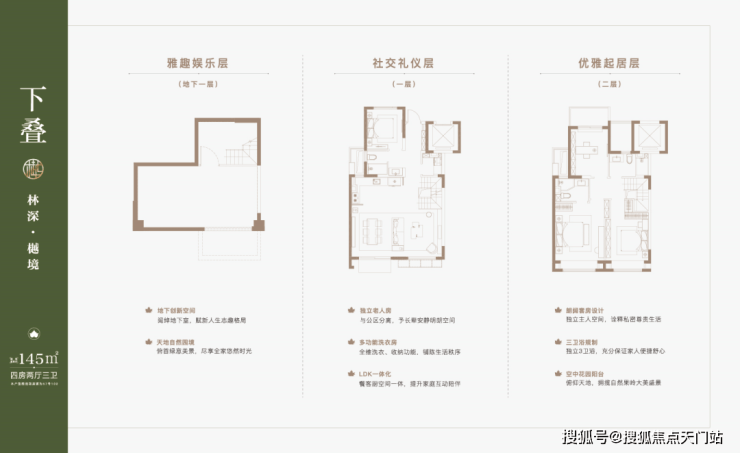 建筑面积约91-144㎡ 低密叠墅(复式住宅),则为改善置业者提供了新的选择。庭前一方天地、巨幕宽厅、星空露台、地下空间,称得上是城市墅居的理想范本!