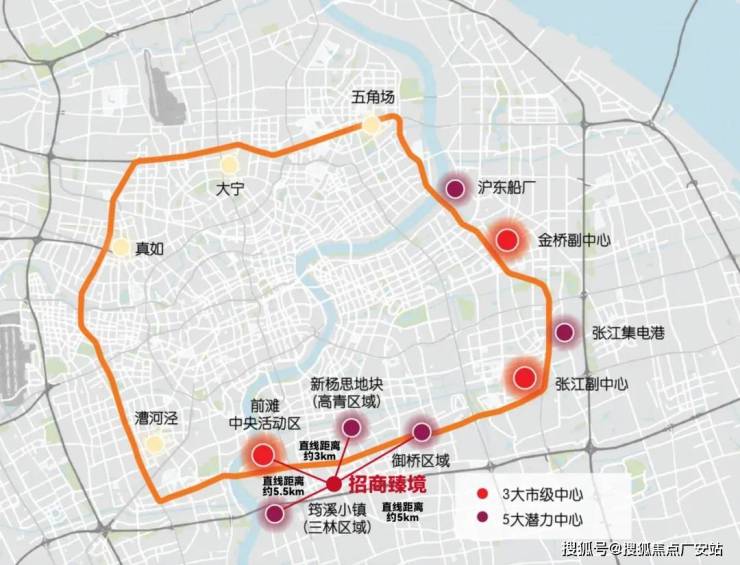 根据规划,金色中环将串联浦东3大重点地区(前滩中央活动区、张江副中心、金桥副中心)与5大潜力地区沪东船厂、张江集电港、御桥区域、新杨思地块(高青区域)、筠溪小镇(三林区域)。目前,前滩、新杨思、御桥、筠溪小镇作为浦东金色中环发展重点聚焦的四大极点,已成为促进浦东经济多元领域高质量发展的重要组成部分,迸发出无尽的价值和潜力。
