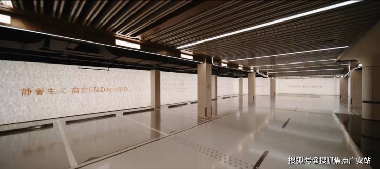 过去在豪宅项目才能看到的类似于“星空顶”地下车库坡道,招商臻境使用了看来更加高级的香槟金色吊顶,并加上穹顶闪耀的“追光”坡道!