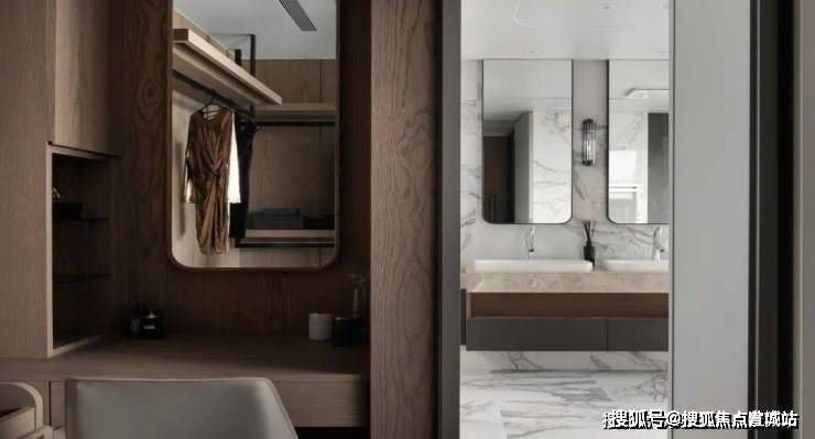 ▲侧边定制梳妆台与衣帽间融为一体,加入梳妆镜,带来了一个华丽优雅的梳妆打扮体验.