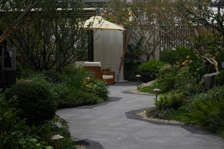 材与感的共鸣,是步履的节奏。石的冷冽、植的柔韧、水的温润,三者在行走的路径中相互回应。肌理随步伐而变,粗犷与细腻、静止与流动,共同勾勒出一条“由触觉唤醒心境”的归家之径。