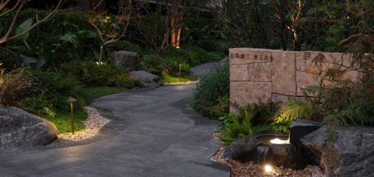 叠山写意,层林成境,高墙围合出静谧的私享氛围,多重植被于光影缝隙间自在生长,使城市的喧嚣在此被轻轻隔开,重塑东方人居的雅致与从容。
