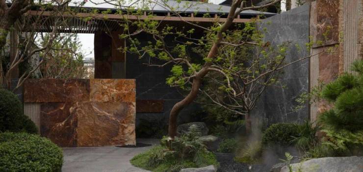 动静相生,自成气韵。以“松迎贵胄”的古意敬呈东方礼序,百年松姿舒展,以生命的坚韧回应岁月的柔光。石与植相随,皆以时间为笔,在繁华深处重构一隅返璞的静境。