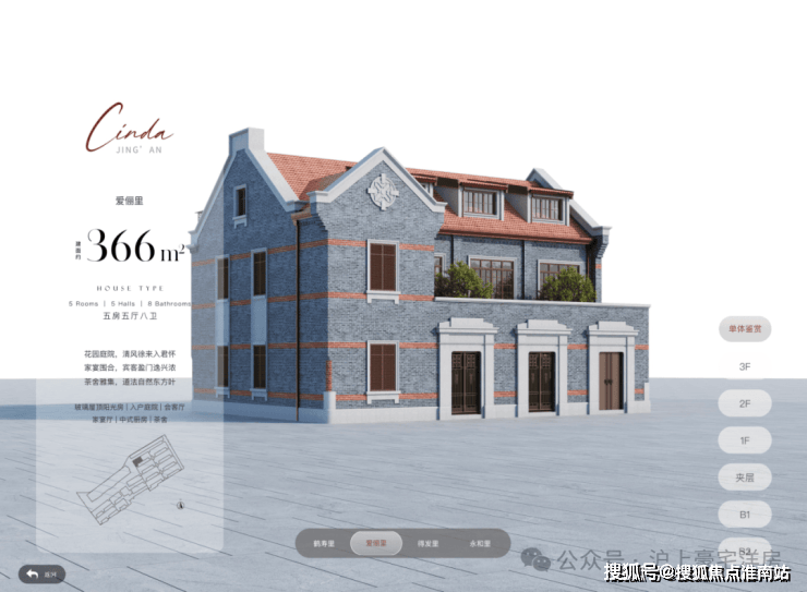 地下1F志趣空间,约7.2m层高,私人菁英社交圈层。首层花园入户,大横厅会晤场域,与时代精神际会。二三层静谧于心,起居室多套房设计,梧桐下的栖心之所。屋顶露台、花园庭院,超大附赠面积,藏身心于天地恢弘。