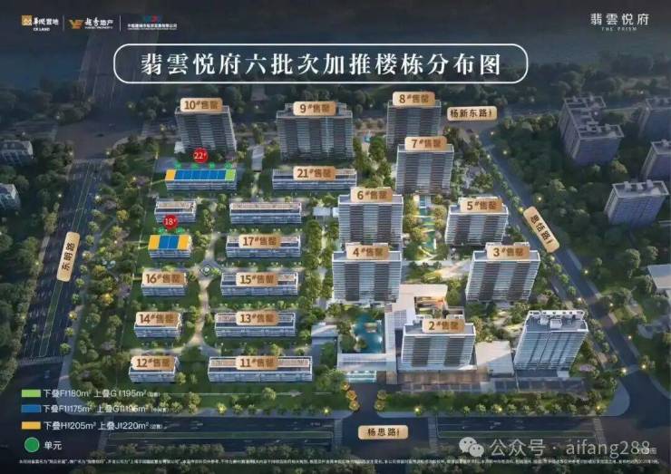 重磅消息:翡雲悦府六批次产品位于一期社区内,建面约175-220㎡的叠墅产品,18# 22# 2幢 共16套,位于二期三批次7、8#建面约113㎡168套房源,9月17号认购