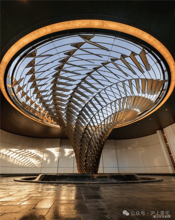海派漩心的顶部,是由室内灯光设计大师“关永权团队倾力设计打造,柔和的光景效果及恰到好处的色温处理,让整个空间营造出奢华优雅的美妙质感,通过环形透光设计,在穹顶形成独一份的贵雅感受。漫步灯光之下,如同走过时间的美妙殿堂。