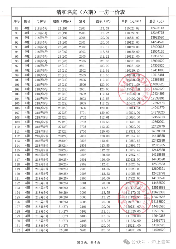 【海上·清和玺】加推5幢,该楼栋房源仅161席,共33层,两梯4户,其中120㎡为边套(共65套),112㎡户型为中间套(共96套),过会均价110650元/㎡!作为该项目收官之作,机不可失!另前期少量建面约112-177㎡3-4房改善大宅可直接认购!总价1200万起!