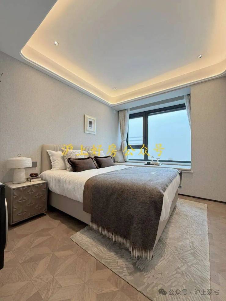 电视背景墙采用卡慕白的石材+皮革造型,弧形吊顶,相当讲究,连空调出风口的形状都打造为海上·清和玺logo山茶花的形状~~三大件为大金(或同等档次)中央空调和地暖,新风系统为百朗(或同等档次),南向阔景阳台,采光视野一级棒!