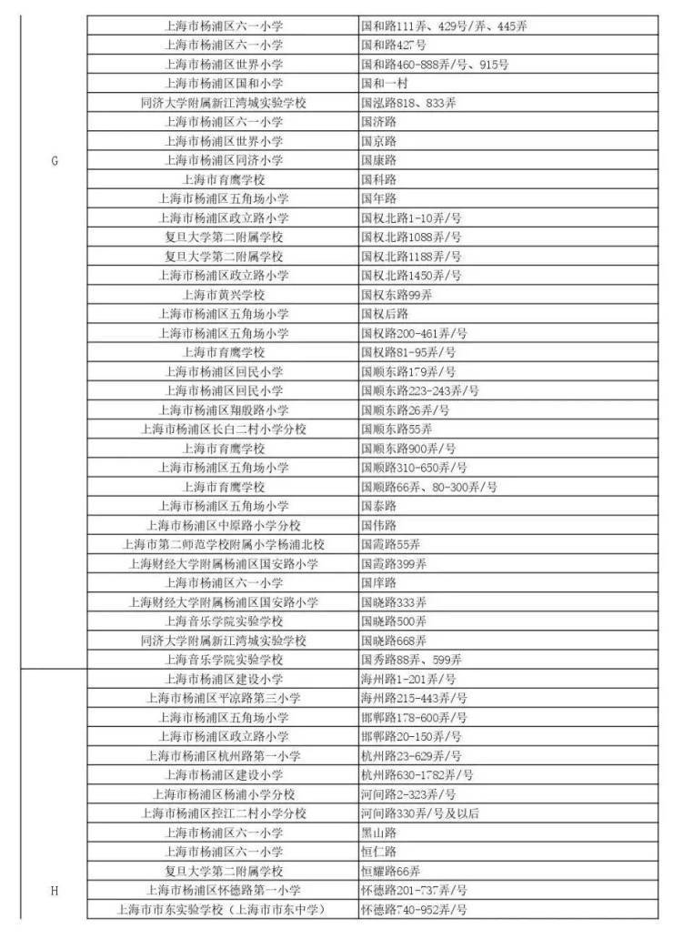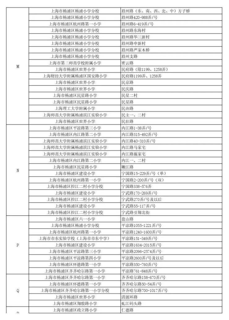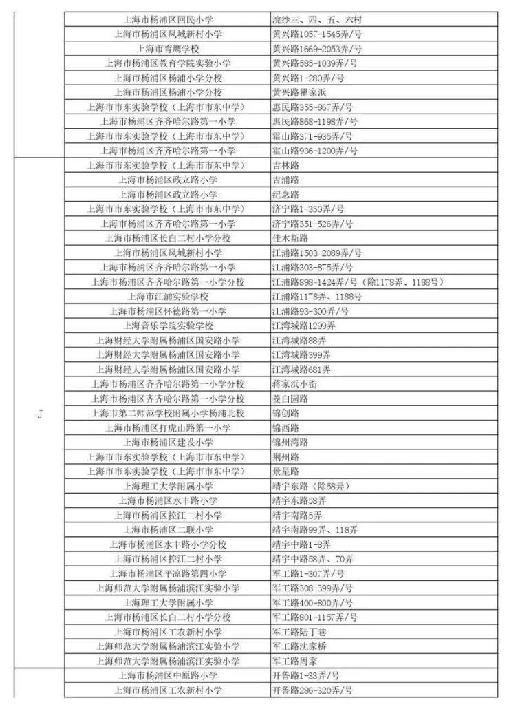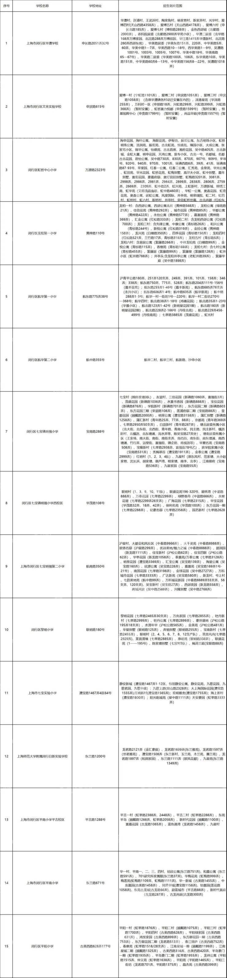 闵行区公办小学对口地段范围