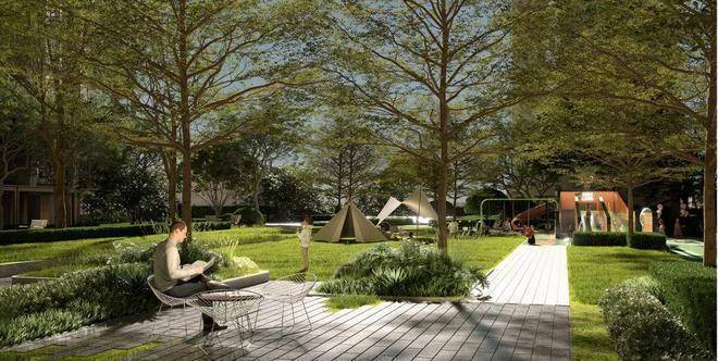 温润木质的瞭望台、微度假卡包空间、条石分割的秩序草阶组团呈现多功能共享空间,主题聚餐、生日 Party、户外影院、演艺活动……满足全龄段业主潮流追求。