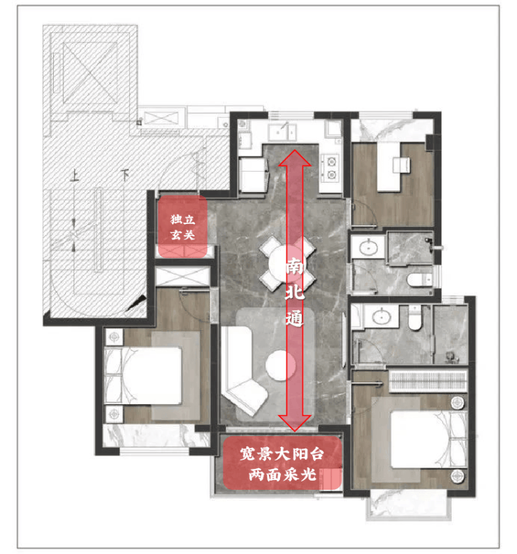 现在很多住宅北向带连廊,影响中间套采光、私密性等,未来居住体验感,还是进入二手市场竞争都会大打折扣。