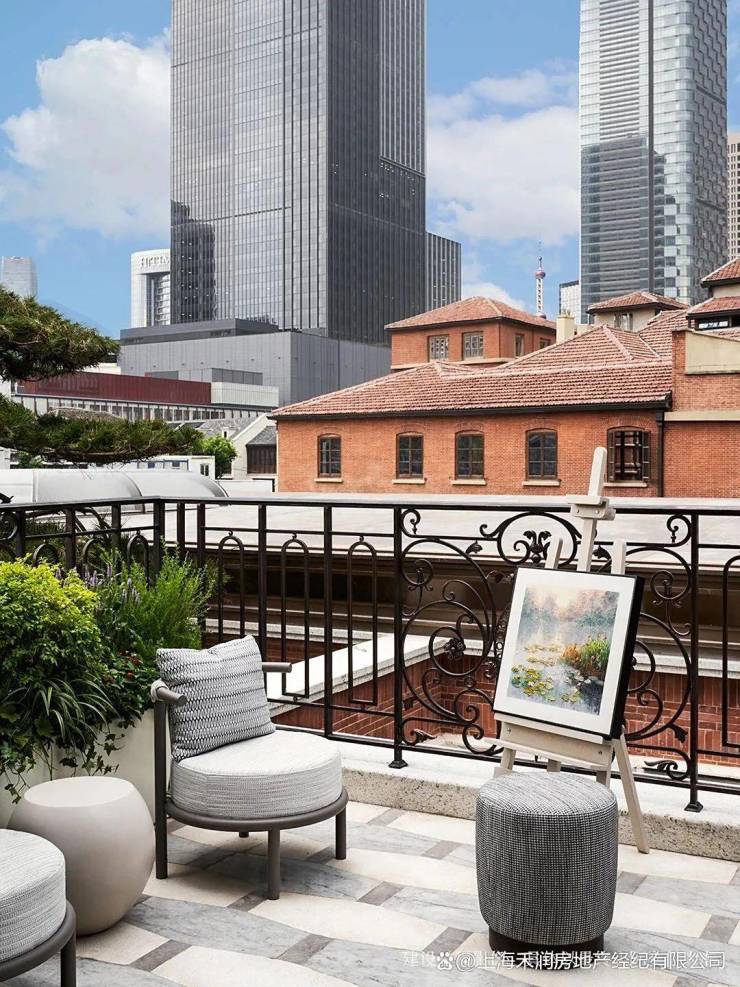 凭栏远眺,近处是百年石库门的红瓦飞檐,远处是上海城市名片东方明珠,皆是业主独享的城市画卷。
