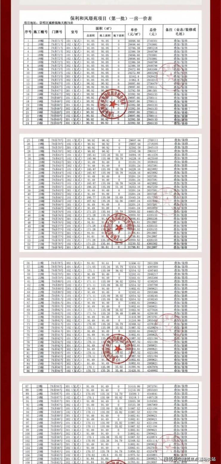 一房一价表: