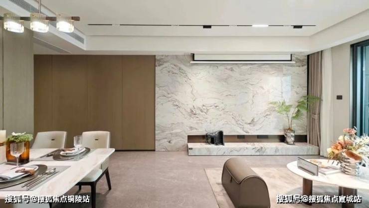 所有户型全屋墙纸交付,连电视机背景墙岩板以及主卧背景墙都是交付标准,卫生间甄选不同的石材,以此来满足功能区的需求。