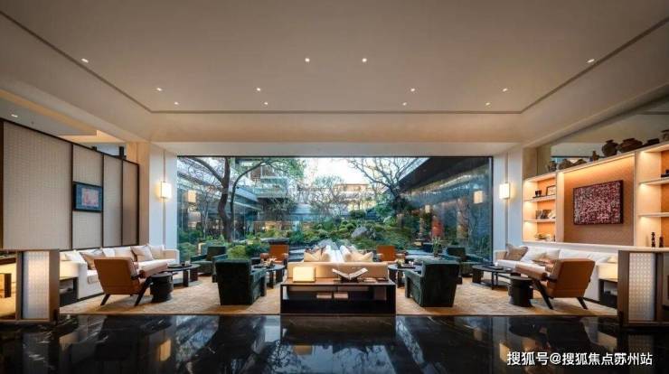 在三面悬空,像是悬浮在水景之上的悬亭茶室,是观看下沉庭院景观的最佳位置。无论是喝茶、聊天还是聚会,都是绝好的场所,业主面子直接满级。