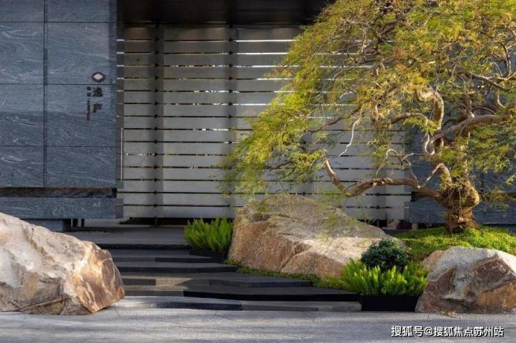 公区方面,西入口正对一棵挺拔的泰山油松、灵动的水景、与艺术感的屋檐共同构成一座现代语境下的“玲珑宝盒”,营造出从喧闹到宁静的情绪转换。