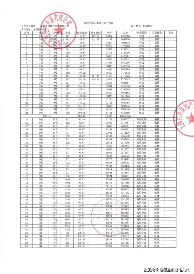 上期一房一价表:
