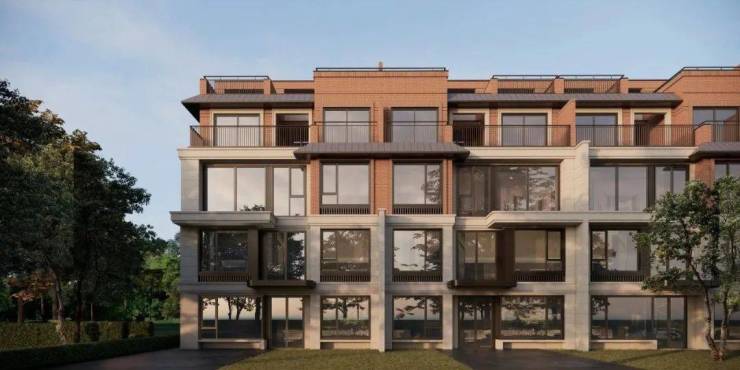 领墅地块共规划35幢3F联排别墅、4F叠加别墅和8F洋房,联排别墅多是沿河排布,瞰景视野极佳,非常臻稀。