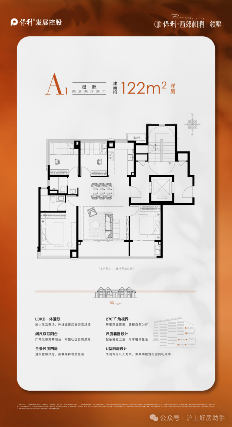 建面约122m²4房2厅2卫墅境洋房,类1梯1户设计,精装交付,南北通透。