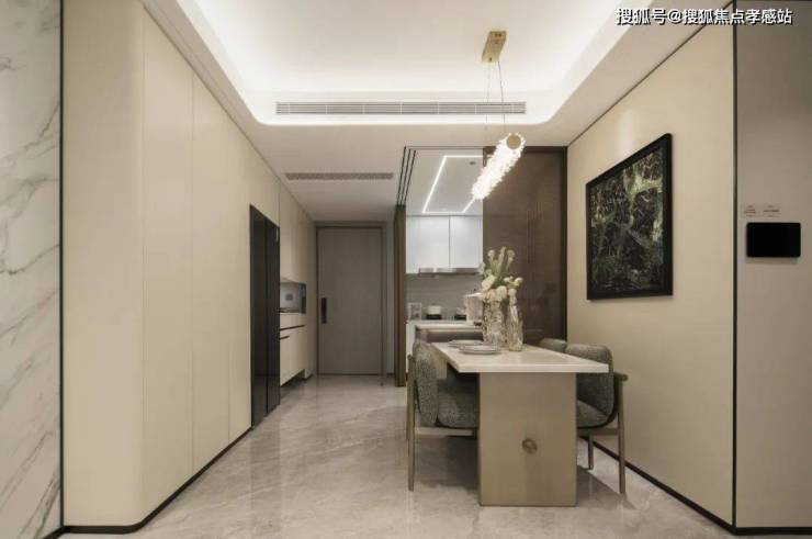 厨房外的半开放式餐边柜同样也作为交付标准,柜体额外提供接近1立方面积的收纳空间。