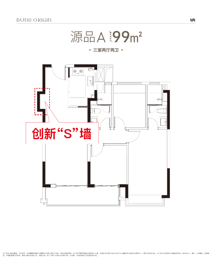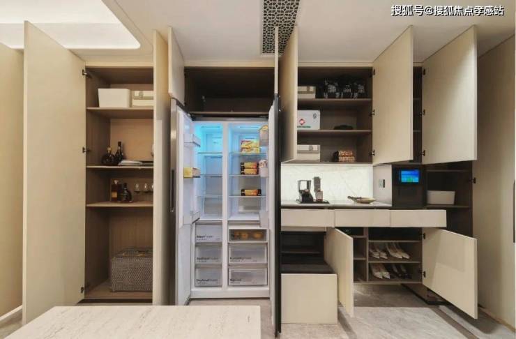 创新"S墙"设计,在分户墙处增设“凹型空间",嵌入式冰箱可以轻松隐形。