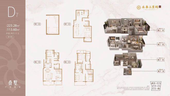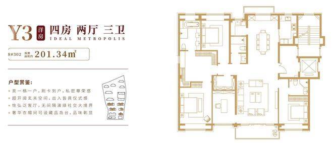 洋房产品:建面约 140-201㎡,均价约 8.2 万 /㎡,总价 1150-1700 万,部分 1-2 层为复式并带有层高约 3.2 米的地下室,为改善家庭提供更阔绰的居住空间。