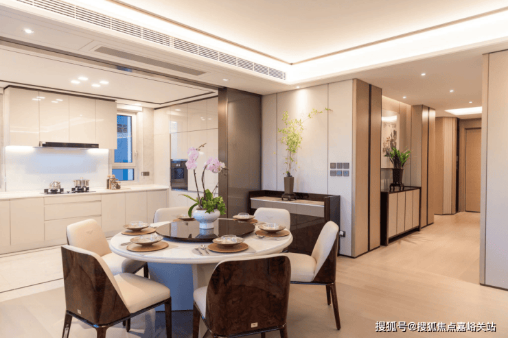 此外,更多细节也值得考究,比如厨房灶台之后的墙壁,用的是整块玻璃,避免墙砖接缝里渗入油渍,配置整块玻璃,不仅仅是从美观角度来考量,更考虑到了功能性。