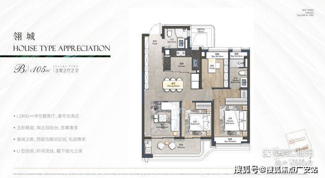 【产品类型】8-18层建面约105㎡3房2厅2卫户型,143㎡四房2厅2卫