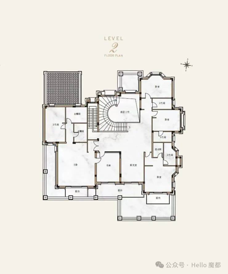 纯地上两层,建面约850㎡(7房4厅6卫)