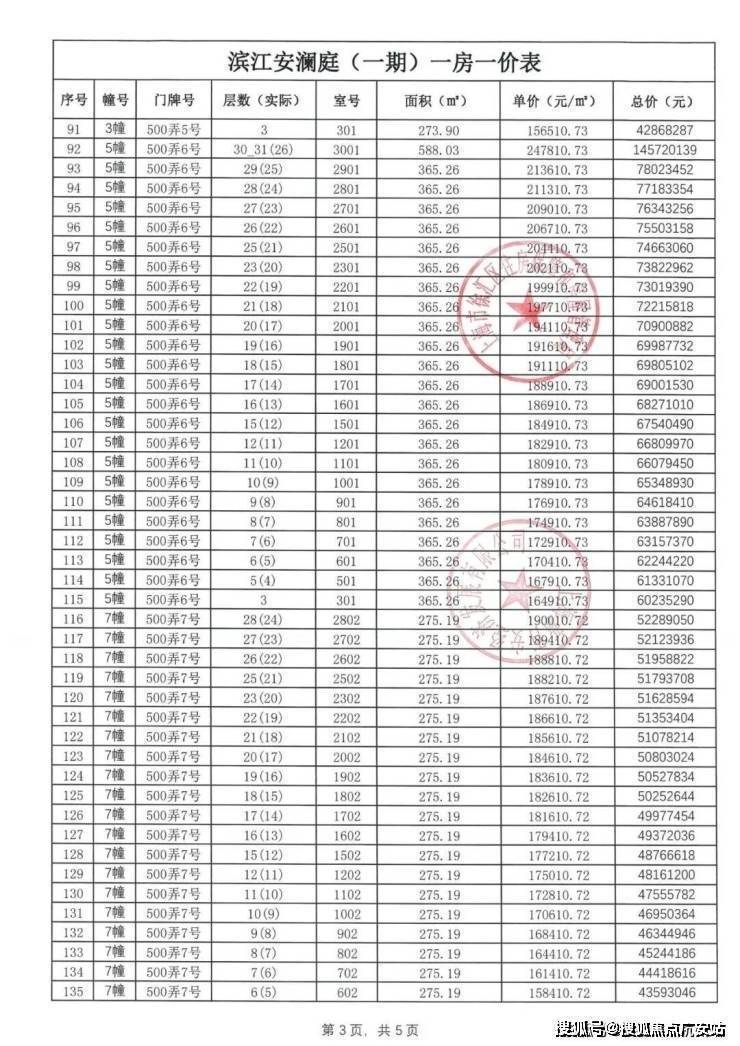 一房一价表