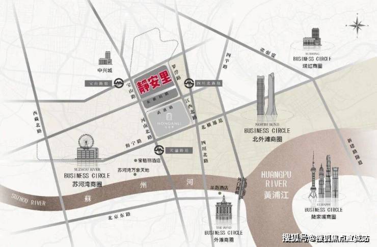 区位地址:静安区北站街道武进路588号(武进路与宝山路交汇处),内环内苏河湾核心,南接弘安里、东靠今潮8弄、西临苏河湾万象天地